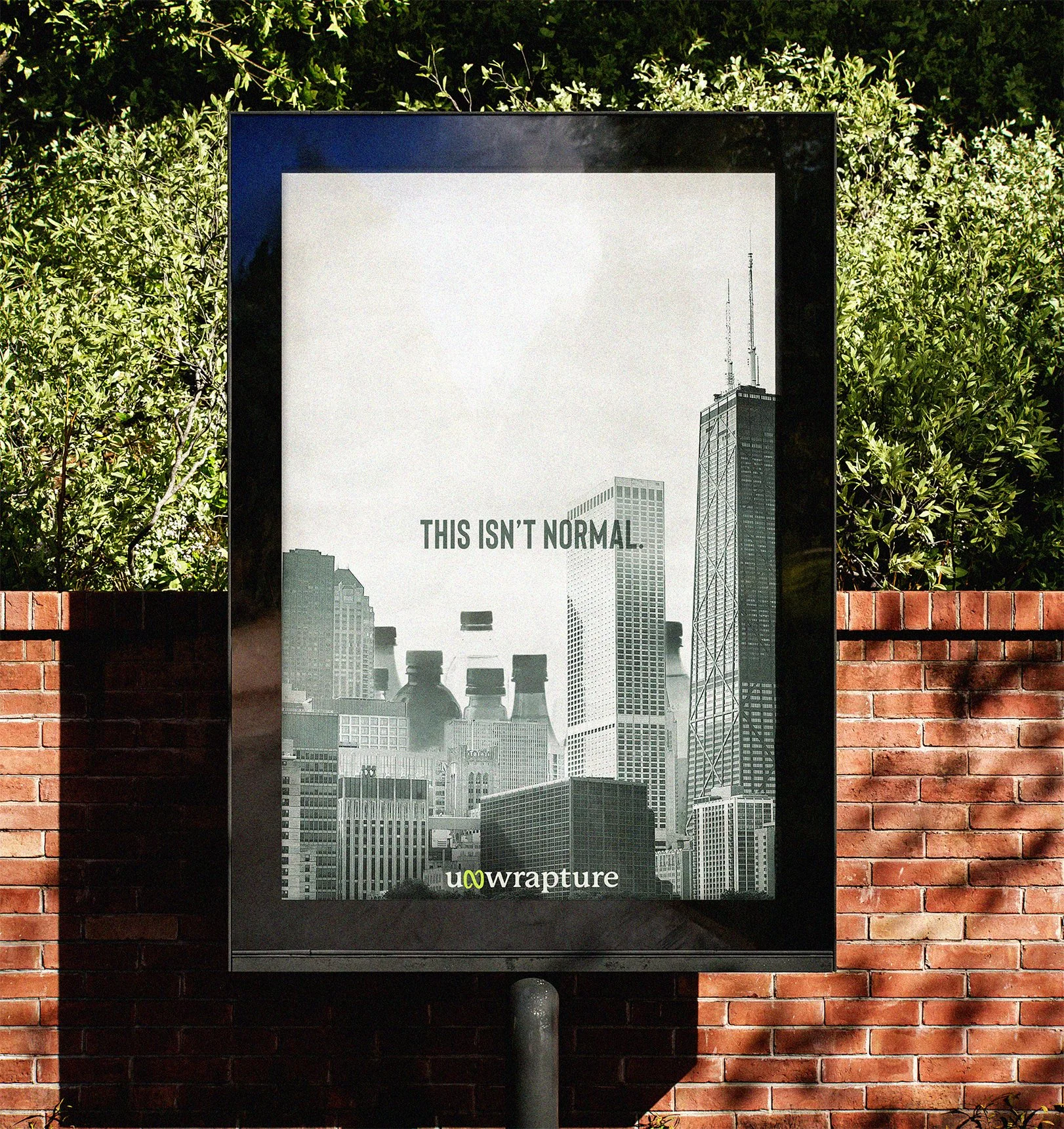 Unwrapture is a concept non-profit initiative committed to reducing our reliance on single-use plastics while promoting sustainable packaging solutions. As the name suggests, the organization’s primary mission is focused not on reusing, but rather undoing decades of environmental harm caused by the manufacturing, use, and normalization of commodity plastics. To that end, Unwrapture advocates for a fundamental shift in how we produce, consume and think about packaging.